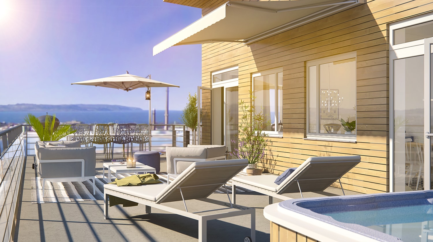Närmiljön präglas av närheten till Munksjön som självklart kommer att erbjuda sjöutsikt för många av de som bor och arbetar i området. Det kommer också att anläggas ett flertal bryggor och grönområden i stadsdelen. Grönområdena kommer att erbjuda platser för möten och rekreation för de som bor och arbetar i Munksjöstaden.